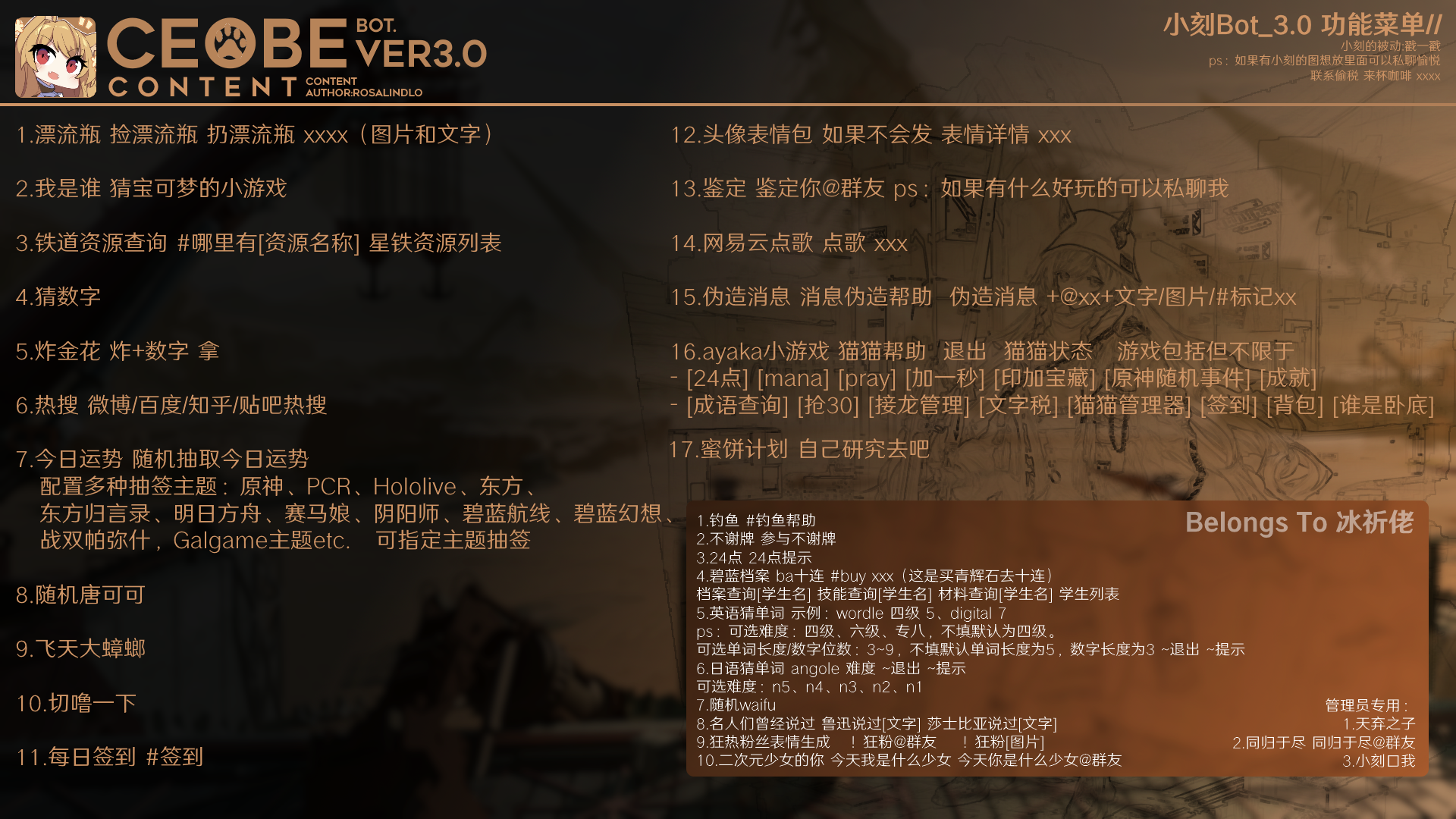 功能大致都写在后面了,直接喊就行了,还是不会请联系偷税